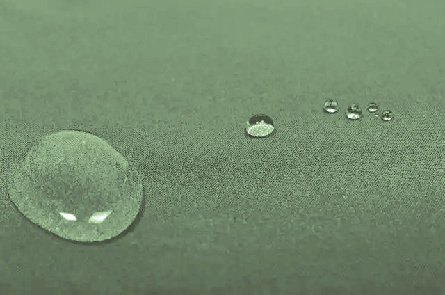 Приклад роботи покриття SoftShell — вода скочується у великі краплі та не проникає вглиб тканини.